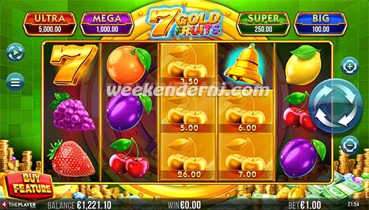 Jika 3 atau lebih Bom Gold Fruits mendarat, masing-masing Bom tersebut meledak membentuk tumpukan simbol Gold Fruits dengan hadiah uang asli yang memenuhi gulungannya. Setelah kemenangan slot besar garis apa pun diberikan, bettor memenangkan semua hadiah uang asli yang terlihat, meskipun mereka tidak berada pada garis kemenangan slot besar.